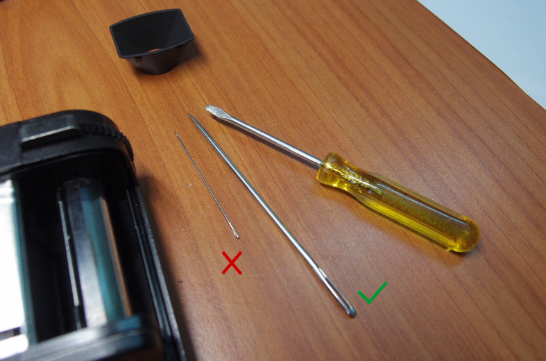 I- Use a larger needle / sharp tool to release open latch (right side), by pushing the tip of the latch towards the lens body.